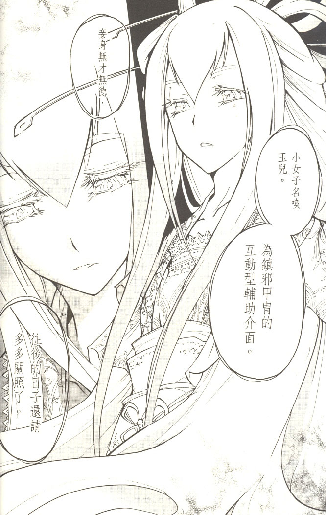 第一集關於組織的背景還是謎團重重,原本跟組織同一陣線的萌妹玉兒,因為對主角一見鍾情而倒戈,於是兩人開始維持宛如阿彌陀丸跟麻倉葉一般的關係,咳,就是主角常大白天就與以靈體形式出現在亞空間的玉兒隔空對話,因為關係進一步的緣故,在第一集的後半,玉兒已經從一開始對 T.A.E. 唯命是從的道具,變成主角的人了(也省略太多了吧?)。