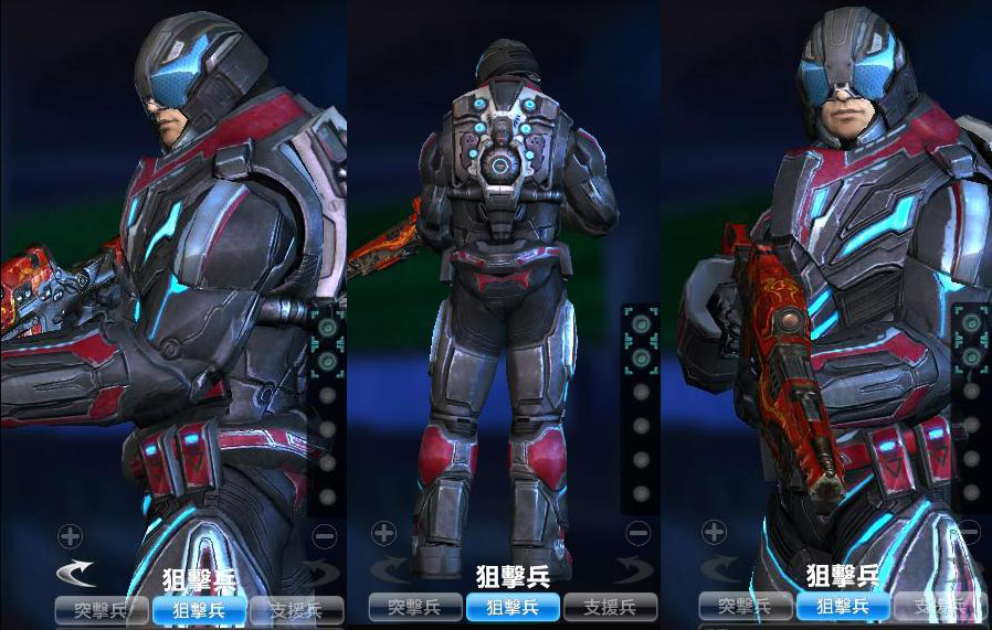 特色:雷克斯精銳英雄進化版,作戰服裝甲材質採用更輕盈堅固的合金金屬,大福增加了噴射的功效,是目前噴射速度最快、噴射功效最強大的裝備,另外還追加了閃避跳躍功能,增加近戰時的敏捷度,可更有效制壓敵人的攻勢。