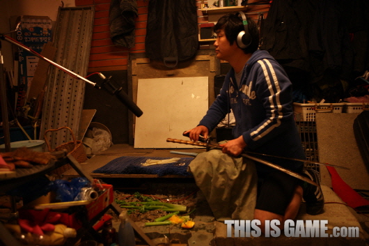 | 運用多種道具來錄製《Blade & Soul》音效的模樣 |