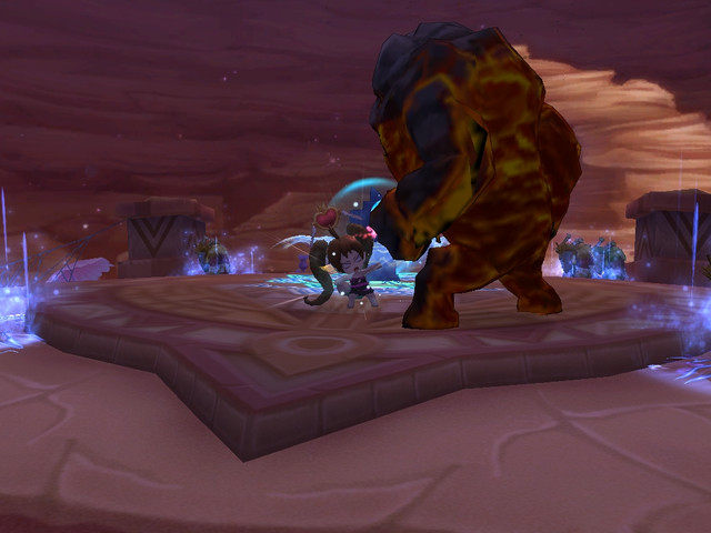 最後兩邊隊伍會會合對付崩焰.札巴罕,當札巴罕發動紫色煙霧的蓄氣特效,施展「天石龍牙破」時,要快速躲在善良地靈旁邊,否則玩家將會無法承受而死亡,要特別注意的是,善良地靈旁邊會有規律的出現搗蛋地靈,不時的把你震出安全範圍。另外,札巴罕的身軀非常堅硬,必須將他引誘到寒霜水柱上軟化他堅硬的身軀,攻擊才能事半功倍。