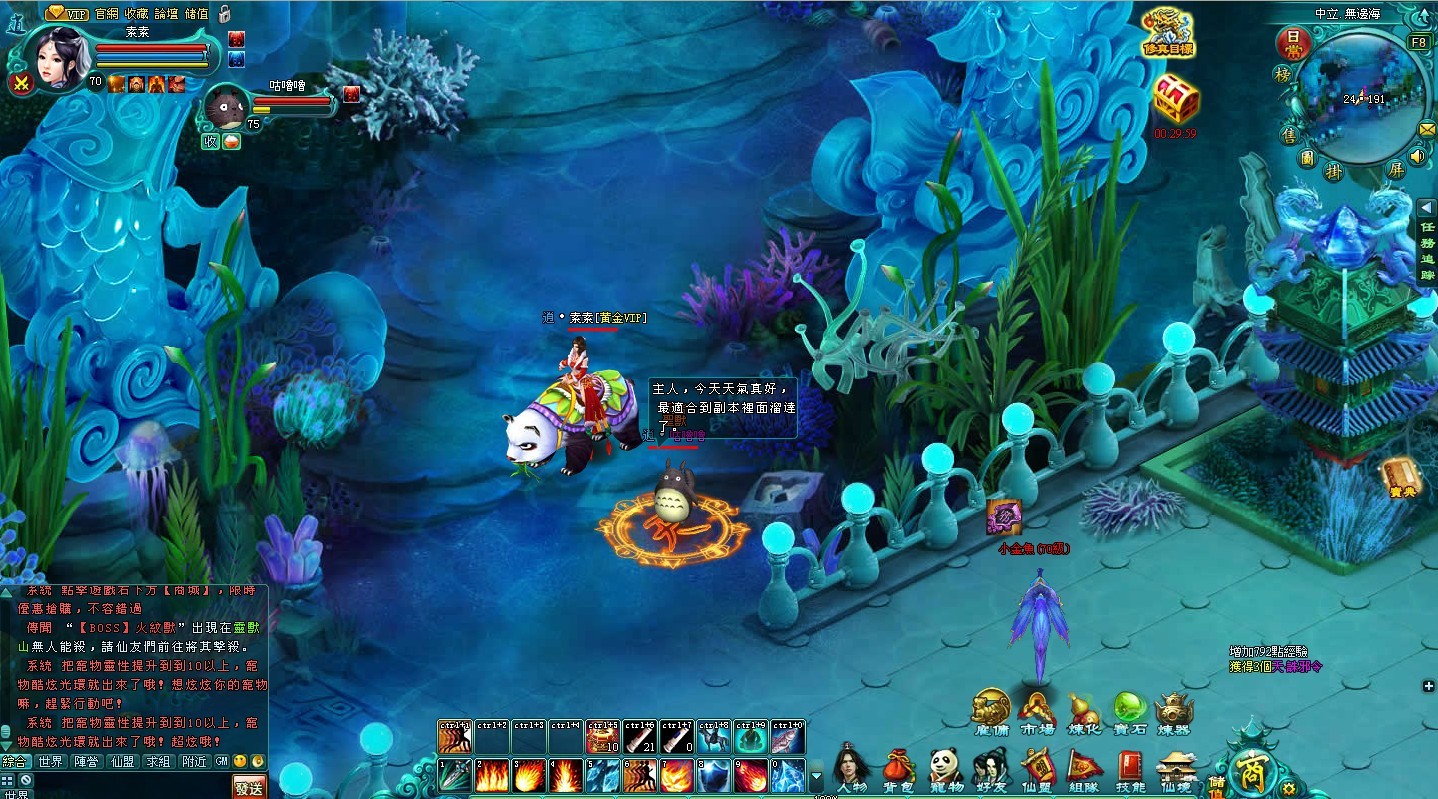海底幻境埋藏著大量的珍貴道具,吸引不少修道者前往爭奪。只要玩家等級達 45 級,即可在規定時間內到龍雪域找 NPC 無邊海領取任務進入幻境。在神秘的幻境中,玩家可以殺殺小怪,採集資源!定時還會有精英怪和 BOSS 出現。玩家與玩家之間也能進行較量。