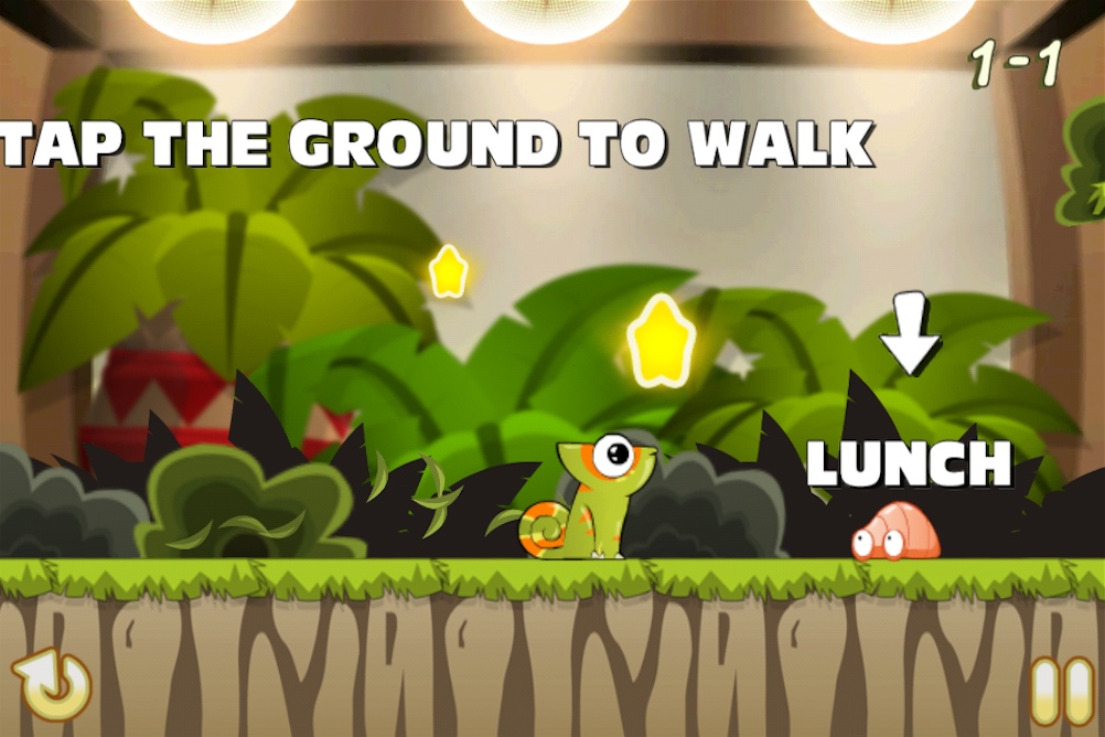 變色龍的主角,很明顯的這可憐的小玩意兒就將是今天午餐餐桌上最令人期待的餐點。只要玩家能夠讓