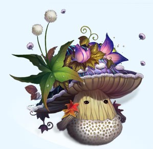 月菇靈獸:蘑菇精顏色絢麗。菌絲頂埔還生長許多小植物。