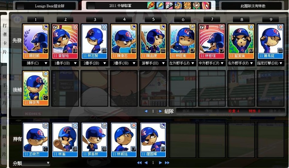 其中打者部份,統一獅的元老球星「鱸鰻 羅敏卿」96~97年表現驚人,當潛力值使用【個人技】,壘上若沒有跑者,力量及打擊皆+2,順風再加上隊友的協助,輕而易舉的拿下分數!此外,統一獅的元老鐵捕「偵仔 曾智偵」表現也不容小覷,打擊率高達0.324,打擊及守備皆相當出色,當潛力值使用【努力不懈】時,當球隊分數落後時,上升打擊+3及速度+2,是值得玩家補進的球員卡之一!