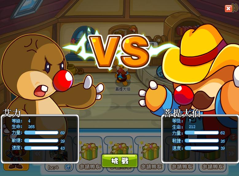 戰鬥系統則分為主動挑戰、被動挑戰,玩家可以挑戰的物件有菩提大伯、自己的好友及陌生人,玩家通過點擊介面內的拳擊手套,完成挑戰的操作,最後根據勝利者的剩餘血量,來給予戰鬥評定。