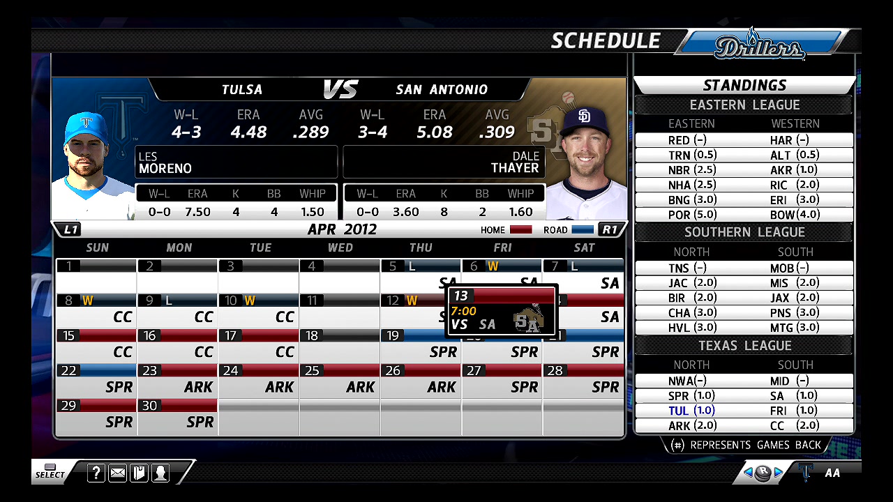 除了原有的大會模式以外,這一次的作品還保留了原有的 Road To The Show 的生涯模式,和王朝模式的 Franchise Mode 跟 Season Mode。在 Road To The Show 模式進行中,玩家可以扮演 2A 聯盟的球員,一邊完成球員的目標進行,也要同時注意競爭對手的崛起,一點一滴的爬上大聯盟成為明星球員。