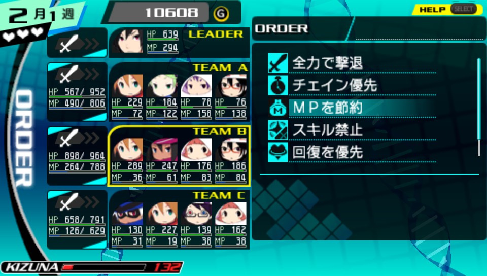 接下來要移動的方向區要從「前」「後」「左」「右」4 個之中選擇。從現在位置到那邊需要多少距離以及要進行的動作會讓行動順序出現變化。另外主角及星之子使用瑪娜點數(MP)來使用的技能中因為有著可以攻擊複數方向的技能,所以不一定要移動去污穢的弱點方向也能打到 WEAK POINT。參考污穢的弱點,來進行戰略性的攻擊吧。