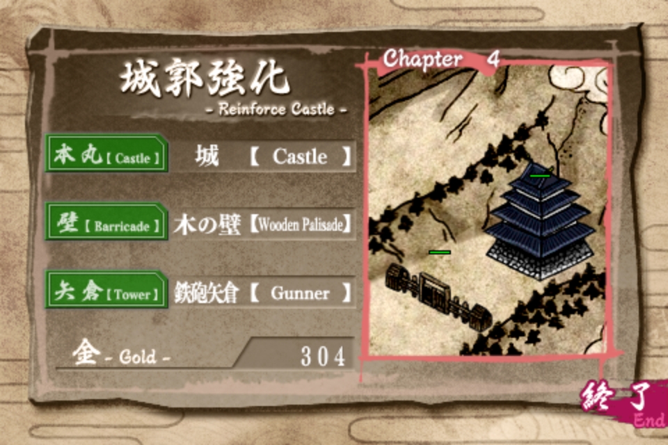 除了一般戰鬥單位外,在每一陣防衛戰暫告一段落後玩家也可針對本陣作升級而依次加強建築結構,除了使守備陣地更加耐打外還能有提升我方全軍能力效果!同樣的玩家也可將防護牆由破木板換作石磚,並在其上安置火砲箭塔。