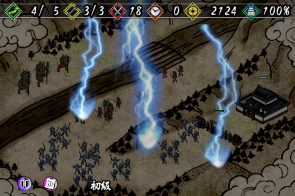 雷電,但相對的給敵人的傷害稍差一些。白虎的的咆嘯能使我方士兵在一段時間內進入無敵。玄武則如其外型,使敵人陷入泥沼而緩步爬行。