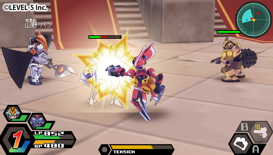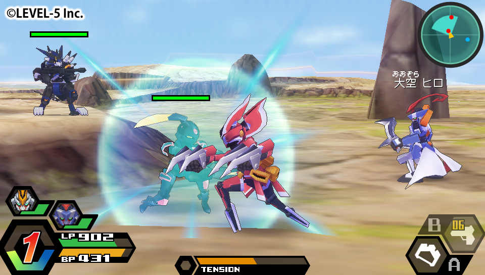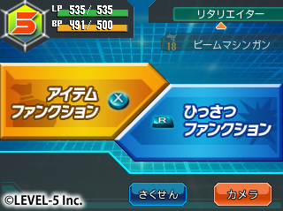 當然戰鬥也能享受到裸視 3D 的樂趣。「爆 BOOST」將目前為止戰鬥狀態列跟選單簡約化,移至下畫面,能讓玩家更加投入戰鬥。變得更加真實的 LBX 戰鬥。尤其是 3D 化的必殺畫面玩家更是必看!