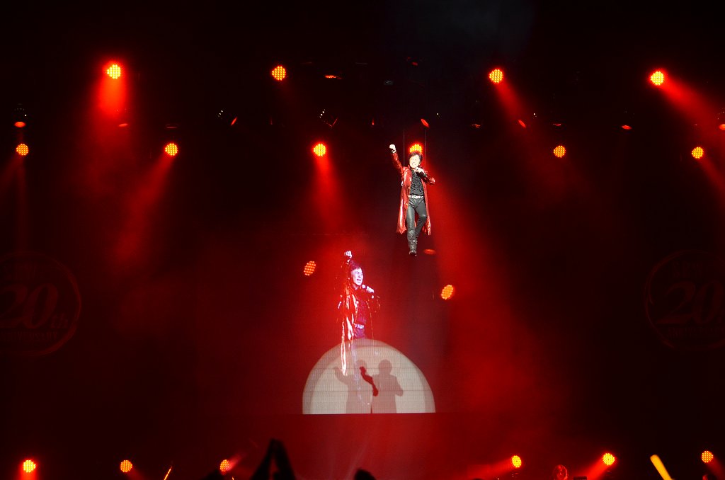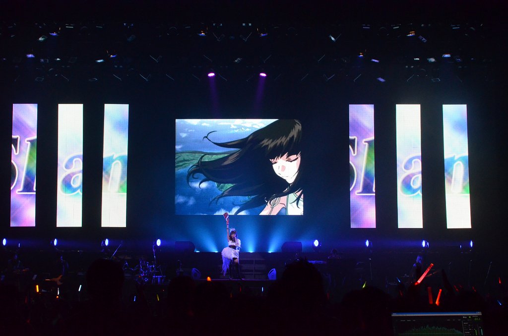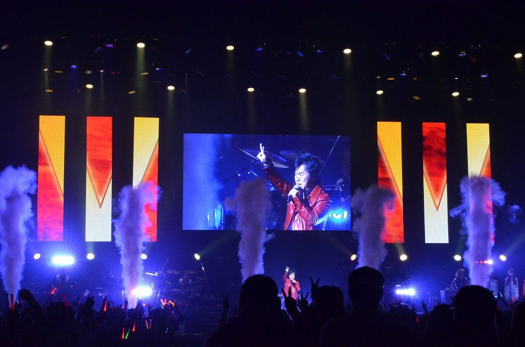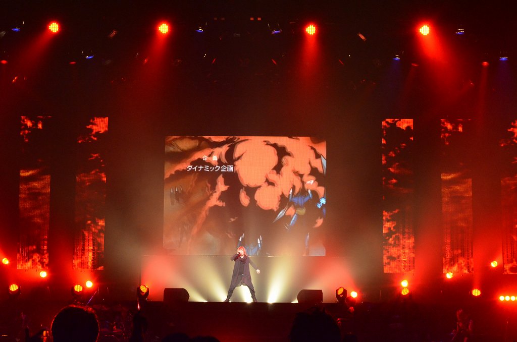 緊接著,被稱為 " 動漫歌曲界的大哥 " 水木一郎登場了。隨著「3,2,1,0」的倒數計時後演唱「飛翔的無敵鐵金剛(空飛ぶマジンガーZ)」作為舞台開場的序幕。曲子唱到中間不只是鐵金剛飛翔,水木大哥自己也在舞台上作出飛翔的表演,底下情緒瞬間沸騰。