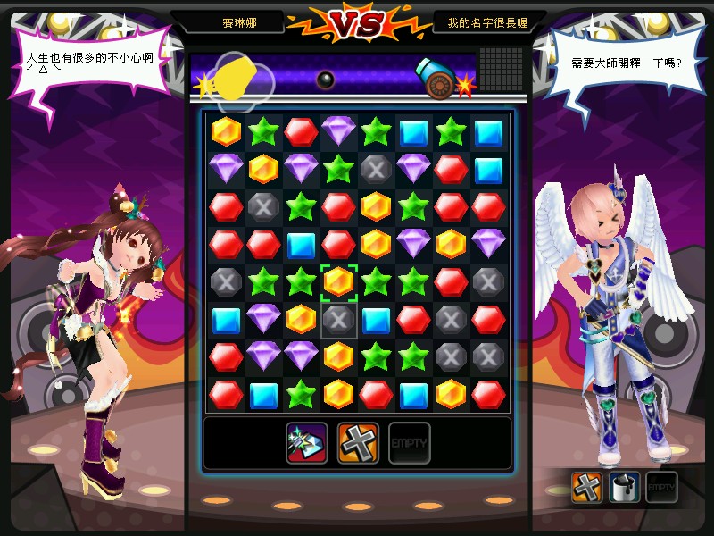 3 月 22 日「魔幻寶石」改版讓玩家可以在小遊戲區體驗寶石方塊遊戲,不論是單人挑戰輕鬆玩還是雙人 PK 刺激玩,兩種玩法都可以讓玩家消磨跳舞之餘的悠閒時光。