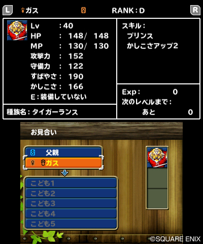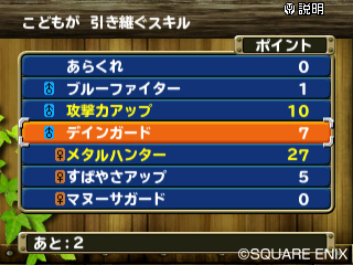 | 從小怪獸種族的技能跟雙親的技能中選擇想要學會的東西來繼承。 |