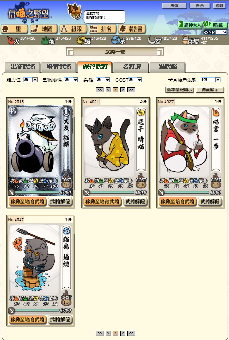 ● 貓武將的培育