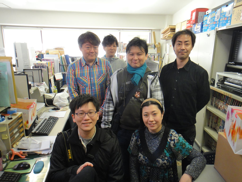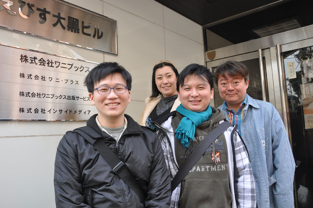 | 皇宇&惟丞在「GUM」編輯部大樓前和平田編輯長、岩井責編一同合影留念 |