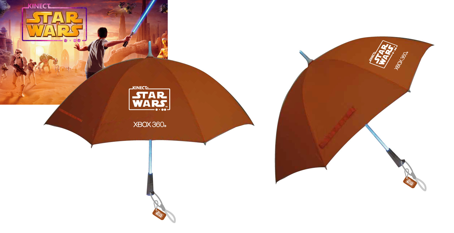 Kinect 星際大戰》光劍傘乙支,估計零售價新台幣 1290 元。購買《Kinect星際大戰》限量版主機,可獲得光劍傘乙支外,再加贈 Xbox 360 黑色無線控制器乙支,估計零售價新台幣 13980 元,贈品數量有限,送完為止。活動自當天下午五點起開放排隊領取購買優惠之號碼牌。