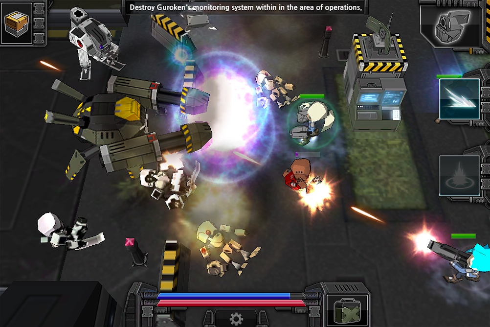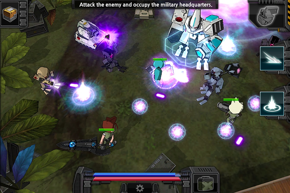》中,玩家為了對抗敵軍、保護自己陣營安全將需要完成各種任務。玩家可以組成最多 3 人的隊伍,配備多樣的武器,用觸控的形式享受射擊遊戲的樂趣。根據所有玩家的任務結果,戰況系統會計算並指定下一任務。