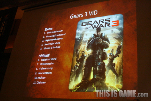戰爭機器 3》裡有 4 個人物登場,強調 4 人合作遊戲與新武器。而共同登場的鋸子則設定為遊戲的商標。