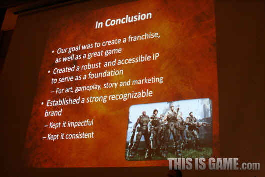 Rod Fergusson 說:「做出超越遊戲的東西很重要,仔細組成遊戲的世界、人物、故事等,再由此做出品牌。韓國也是一樣,品牌形象對消費者來說非常重要,雖然有時候是因為喜歡產品本身才購買,但更多時候是因為品牌認知才決定購買。」