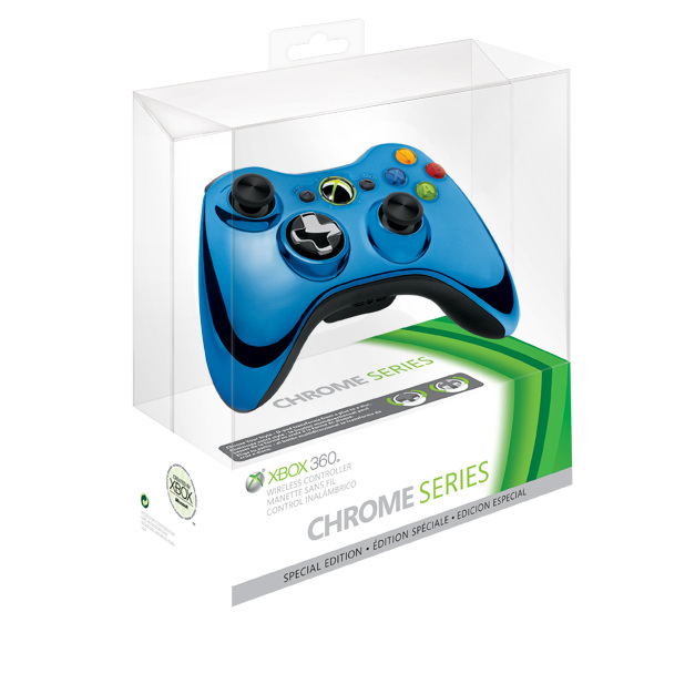 微軟 Xbox LIVE 程式設計總監 Larry Hryb 主持的 Xbox 官方部落格「Xbox LIVE's Major Nelson」,4 月 2 日發表將於 5 月中旬推出採用鍍鉻金屬亮面質感的 Xbox 360 限量版鍍鉻無線控制器,配備可調節式方向鍵(D-Pad),提供藍、紅、銀 3 種配色款式,價格 54.99 美元。