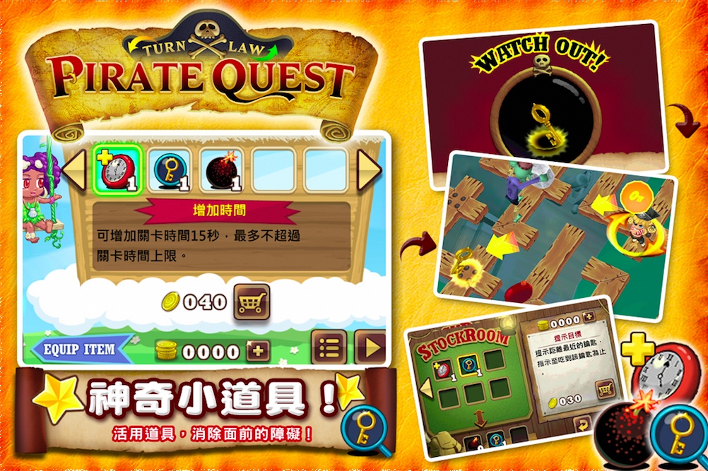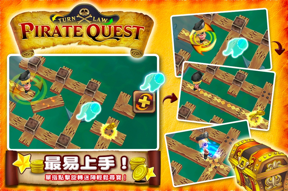 中華網龍 WALKFUN 行動遊戲平台今日推出最新的休閒趣味益智 APP 遊戲《海盜任務(PIRATE QUEST)》,iOS 版今(5)日上架。擁有可愛 3D 卡通畫風又富挑戰性的《海盜任務》,在各個不同的冒險地圖上有著獨特立體迷陣,玩家將利用單指點擊旋轉迷陣,幫助聰明又勇敢的小海盜「MARS」穿越重重難關,躲避四面八方恐怖怪物來襲!玩家可動腦運用「Turn Law─轉轉法則」,找尋神秘大海中的最佳的尋寶航線。