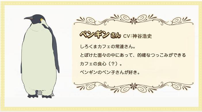 | 企鵝先生,是咖啡廳的常客,個性比較嚴肅正經,感覺就是專門吐嘈的角色。(笑) |