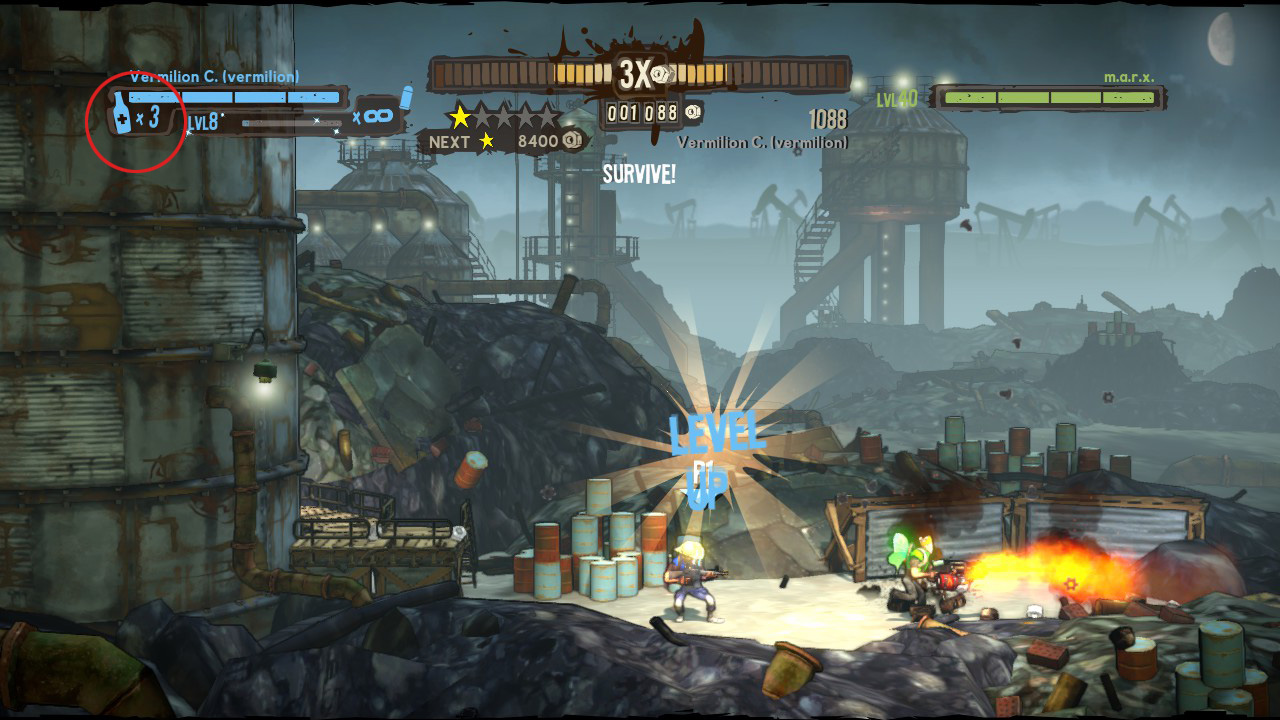 線上模式中的戰利品數量會根據玩家的表現而分攤,貢獻較多的玩家可以分到較多的齒輪。不用擔心齒輪會因為分攤而變少,由於線上模式的過關速度很快,而且複數玩家的連段也比單人模式來的容易,因此線上模式的齒輪進帳效率一定比單人模式來的快。這種設定直接鼓勵玩家多接觸線上模式,相當聰明的做法。遊戲提供了線上排行榜的設定,玩家可以看看自己在世界的舞台上有多少斤兩,或是和好友比較彼此的表現。