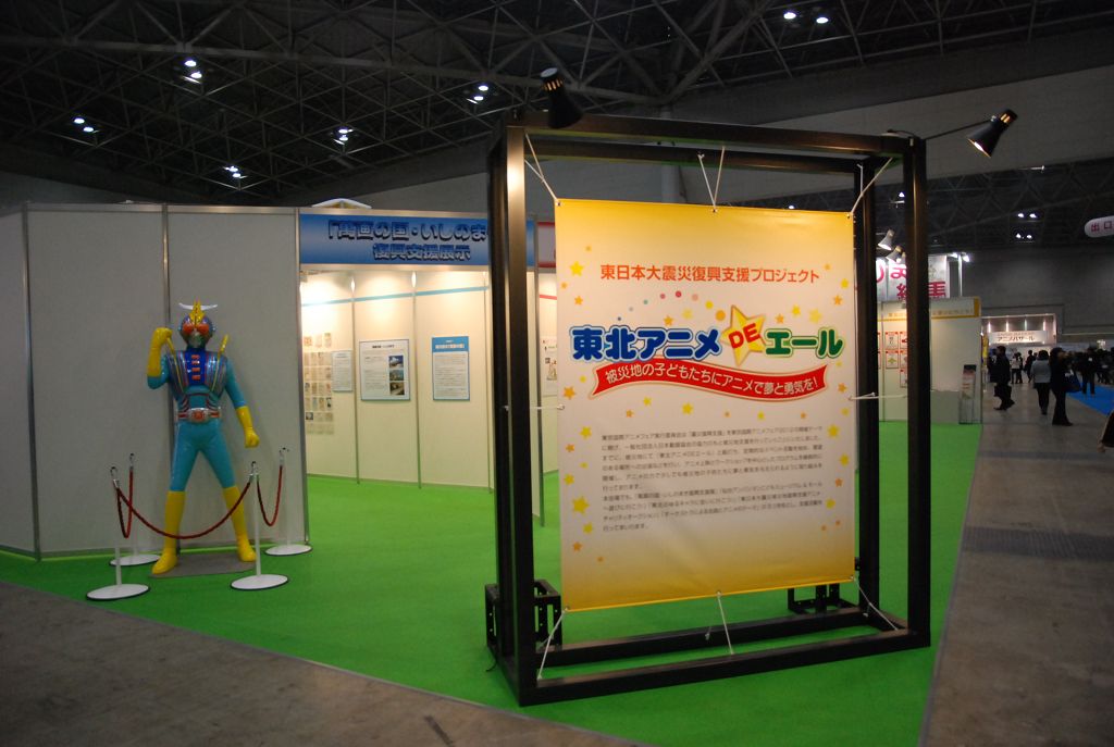 在活動進行的同時,東京國際動畫展的主辦單位也希望他們能夠為去年 3 月因東日本大地震而受到影響的受災地盡一份心力,因此除了在會場特別設置了日本東北的「復興支援展示」,介紹了該區域的各地觀光形象角色之外,更舉辦了總計有近 40 項拍賣商品的義賣活動。