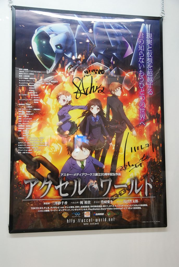 加速世界》簽名宣傳海報、KOTOKO 的簽名海報……等,共計近 20 項商品都展示在會場中。