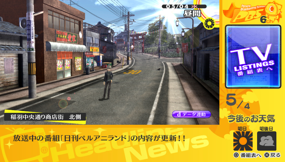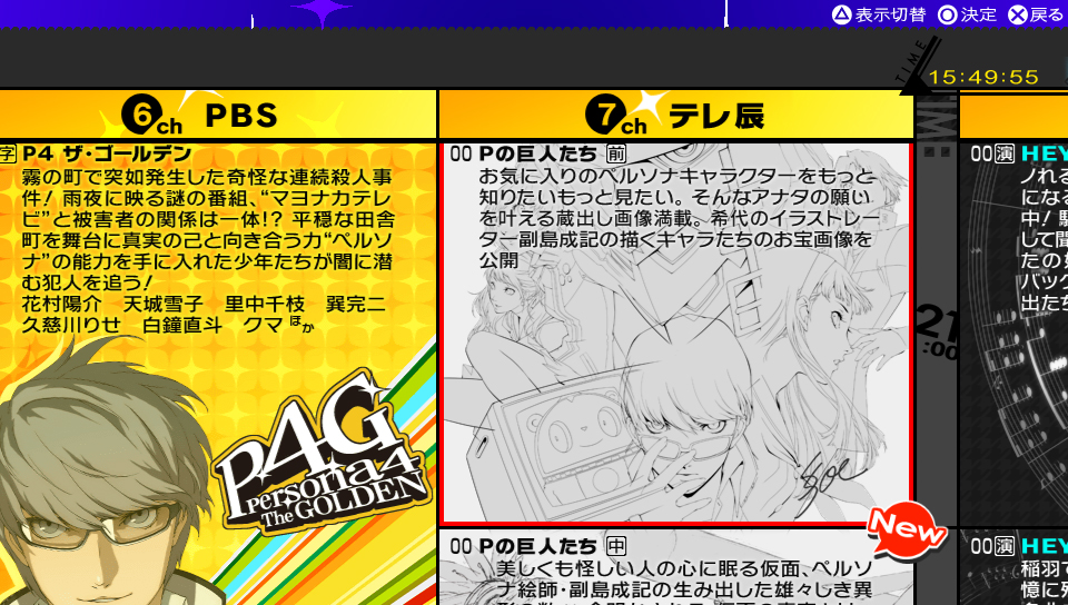 在本作有追加被稱為「節目表」的新要素。當這個要素解開的時候,就能從在 PS Vita 的螢幕上點兩下來打開節目表。