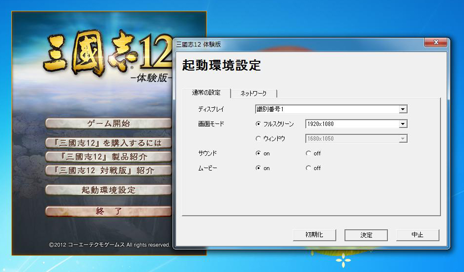 遊戲啟動時會顯示選單,首先打開起動環境設定選單,對遊戲解析度跟音效還有影片的 ON/OFF 進行設定吧。而本作是以要讓平版電腦也能進行遊戲的目標來開發的,所以這幾年的電腦應該也能順利進行遊戲才對。