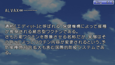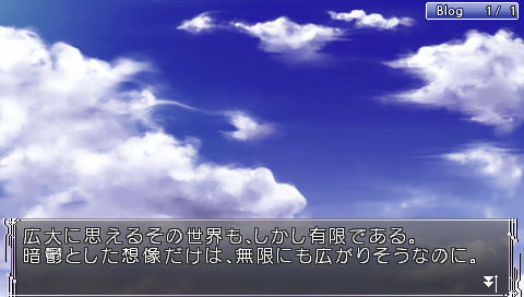 本作不存在著跟一般冒險遊戲常有的「根據選項來決定劇情分岐」的系統,而是搭載了被稱為【Blog】的劇情閱覽系統。