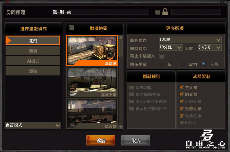 「殲滅」模式:以敵隊全滅為獲勝目標,此模式重點為拼槍技術、團隊攻堅,對自己的槍法準度自信無比嗎?選擇殲滅模式準沒錯!