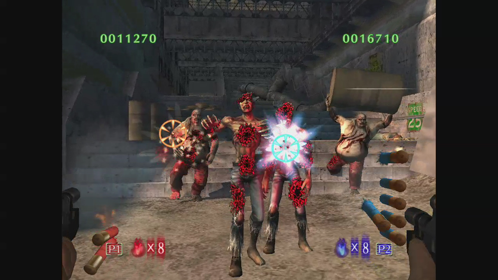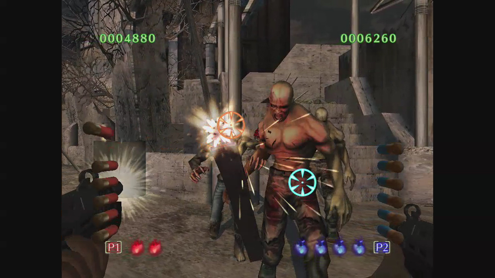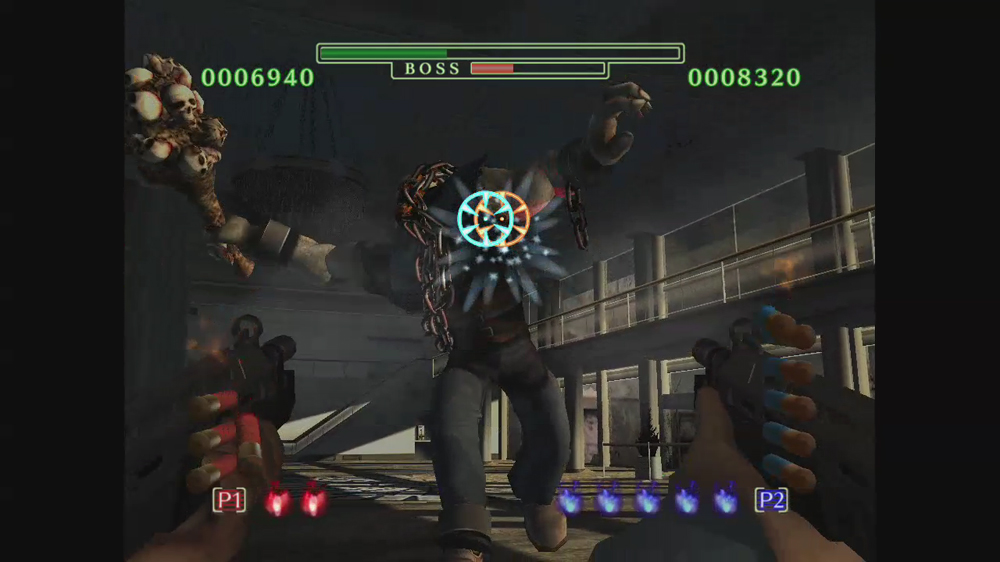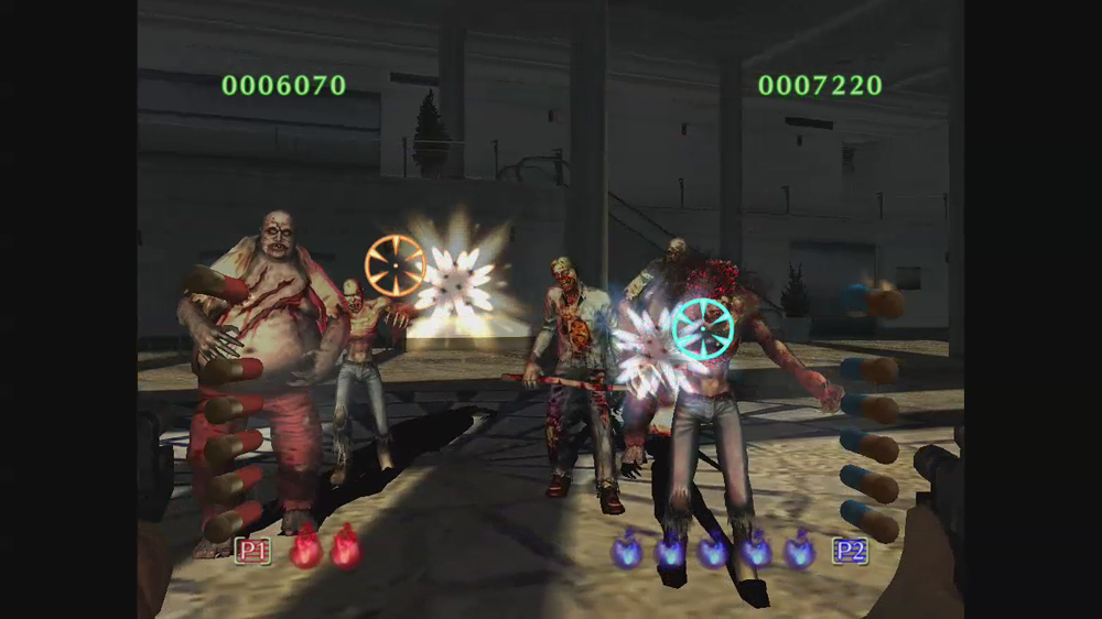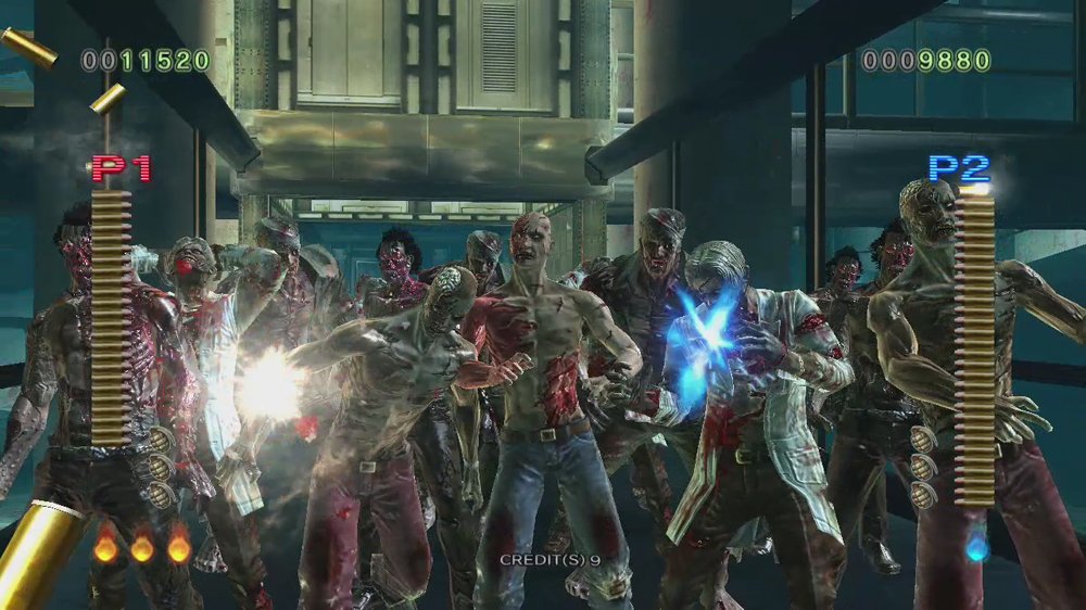玩家用來自保的武器中,在系列作裡首次加進了機關槍。可使用全自動模式自動發射子彈來一次打倒大量的殭屍。副武器則是手榴彈。可以在殭屍密集的地方使之爆炸,若使用時機抓的好也可將場上的殭屍們一掃而空。然後也有可能被接近的殭屍抓住,此時必需要對對著動作感應器揮動動態控制器以將殭屍甩開並擊退。
