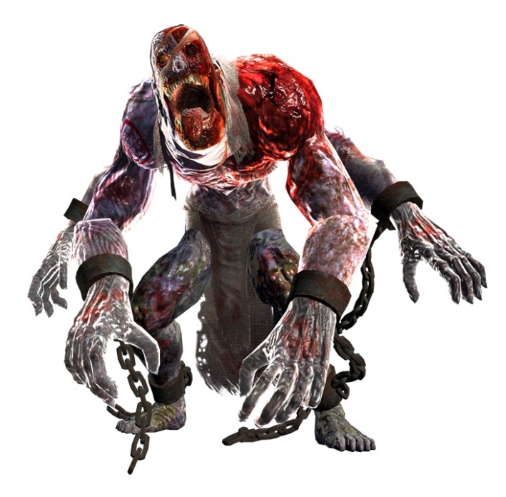 「CHAPTER 1 ESCAPE ~脱出」的 BOSS。不但有四隻手腕,而且還擁有單手就可以將主角兩人握住的巨大體型。