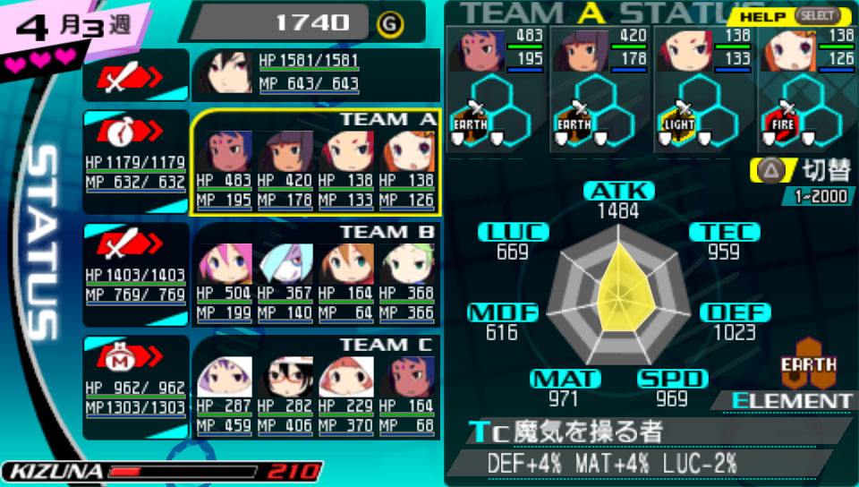 其他像是用 2 名「武僧」+2 名「魔法騎士」來構成隊伍的話,TC 就會發動「操縱魔氣的人」。隊伍的 LUC(幸運)雖然會扣 2%,但 DEF(防御力)跟 MAT(魔法攻撃力)都會上升 4% 喔。