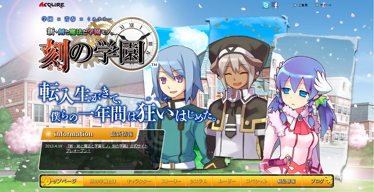 新‧劍與魔法與學園 刻之學園》的官方網站囉!也一口氣開放了 「刻之學園是什麼(刻の学園とは)」「角色(キャラクター)」「(故事ストーリー)」的頁面,讓玩家可以快點知道本作的遊戲內容。在「特別(スペシャル)」頁面中則是發表了由聲優組成的應援團情報,也請各位一起參考看看。