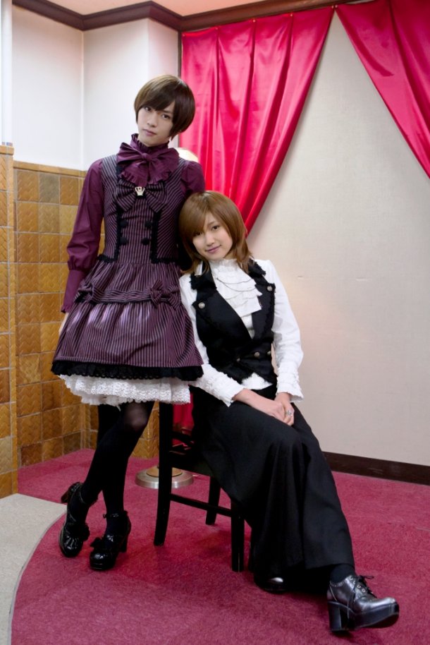| 左為女裝的秋羅(朴賢哲飾)、右為男裝的水樹(大野糸飾) |
