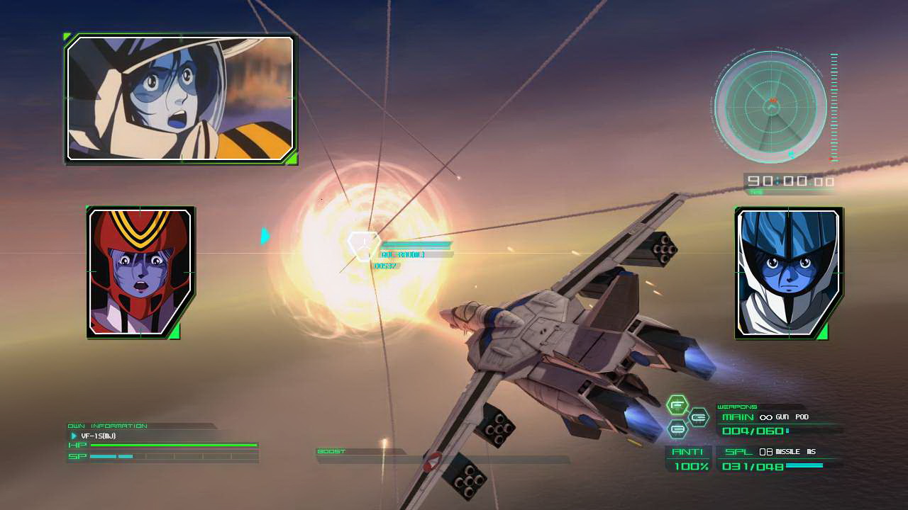 超時空要塞 最終邊疆》原班人馬擔任開發。遊戲中玩家將操作原作登場的敵我雙方機體,展開三段變形滿天彈雨的激烈空戰。同時收錄原作動畫系列精髓之一的「歌」。