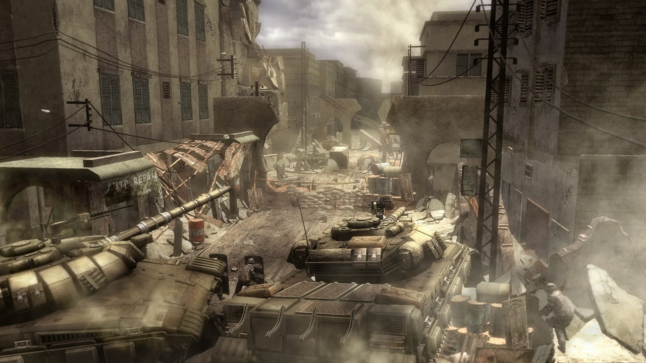 以某處街道作為本次巷戰的舞台。因軍用直升機的螺旋槳不斷轉動,所掀起的硝煙,以及在建築的暗處,有著手持手榴彈的民兵,在一觸即發的緊張氣氛下,就在這樣的場景中進行戰鬥。