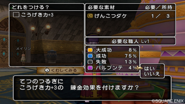 工匠所作出來的道具中,有些會顯示「品質(できのよさ)」。品質會顯示出有幾顆星,根據星星的數量來決定可以賦予幾個鍊金效果。把品質好的道具加上鍊金效果來變得更強力吧!