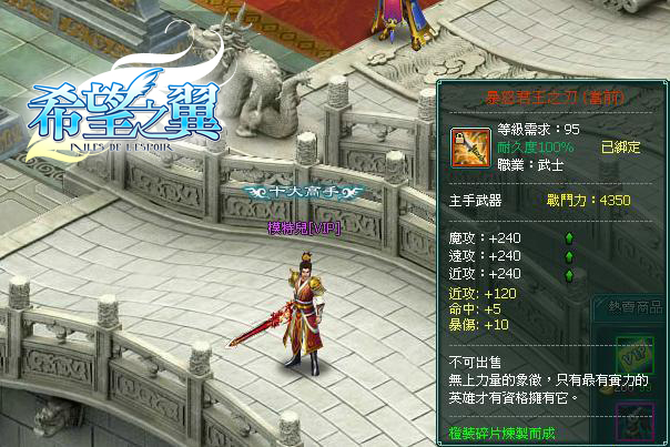 自改版後,只要玩家等級達84級以上就能挑戰新開放的「冰封劍塚」高階副本,一入場景會先陷入敵方的人海戰術中,其中「被操縱的武士」與「被操縱的巫師」攻擊力可是十分兇猛,再加上難纏的「魅惑之術」,令挑戰者幾乎舉步難行。想要得到甜美的勝利果實,就需要集合眾高手團結力量,才能順利朝邪后邁進,而這些守關的小怪雖然難纏,但擊敗後有機會掉落「高級升星石」、「特級升級石」和「寵物經驗丹」等實用寶物,更有可能能得到煉製90級紫裝的「古帝結晶」。