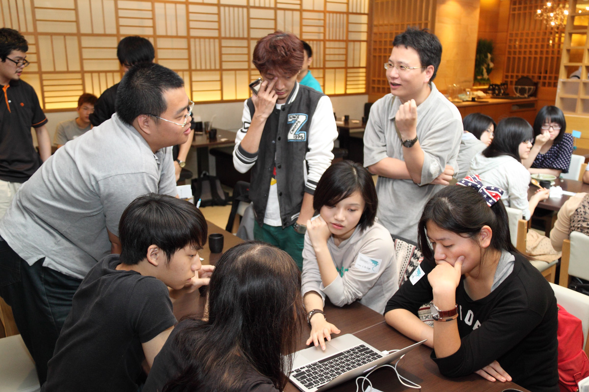本次餐會一共有 40 名參賽者出席,先前只能透過網路見識彼此作品的眾多參賽者,首次有機會能齊聚一堂面對面互動。在巴哈姆特大家長 sega 簡短致詞後,餐會活動正式展開,席間參賽者先是在工作人員引導之下進行自我介紹,之後就開始各自交流互動,使用平板電腦或筆記型電腦觀摩彼此的心血結晶或交流各自的創作心得,氣氛相當熱烈。