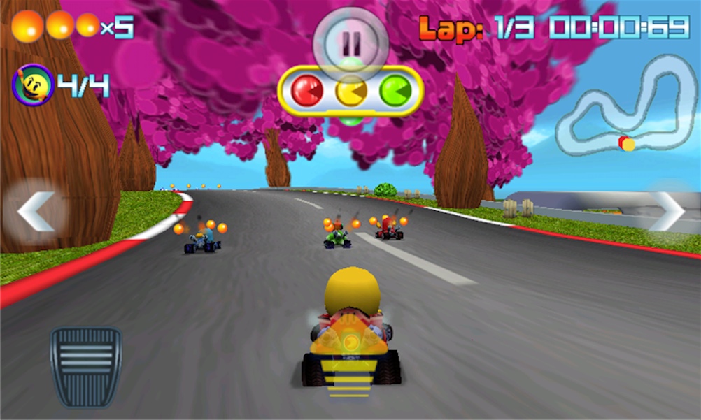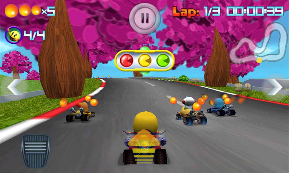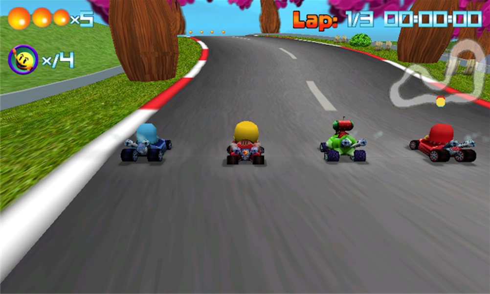 小精靈卡丁車》的話,應該會覺得《小精靈卡丁車》在設定的遊戲內容上和《瑪莉歐賽車》差異不大,因此整體來說是相當容易上手的,不同的地方是瑪莉歐是吃金幣,而小精靈當然是免不了一定要來吃個豆子的。