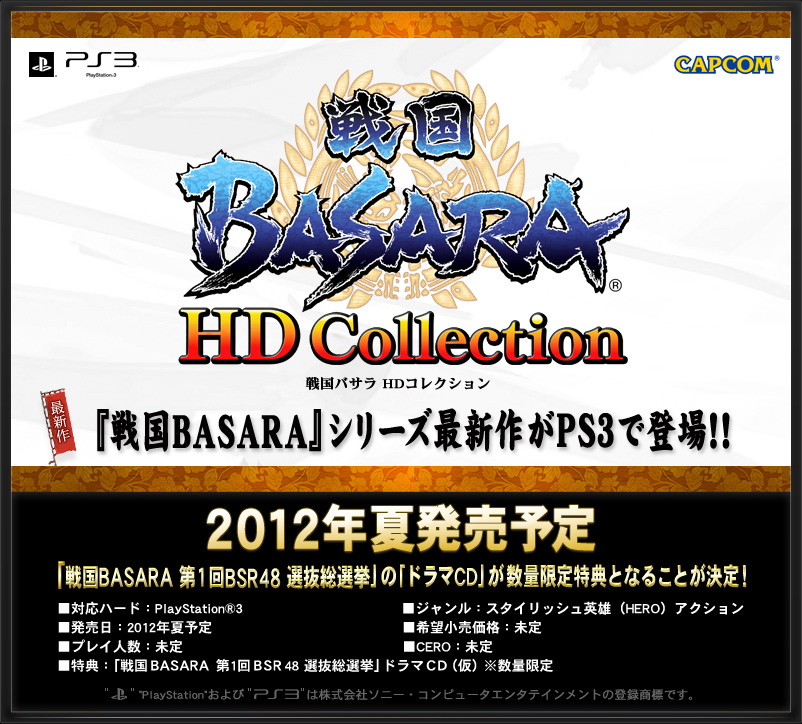 戰國 BASARA 高解析度合輯(戦国BASARA HDコレクション)》,公開本作將於 8 月 30 日發售。售價未定,推估將會訂為 4980 日圓。