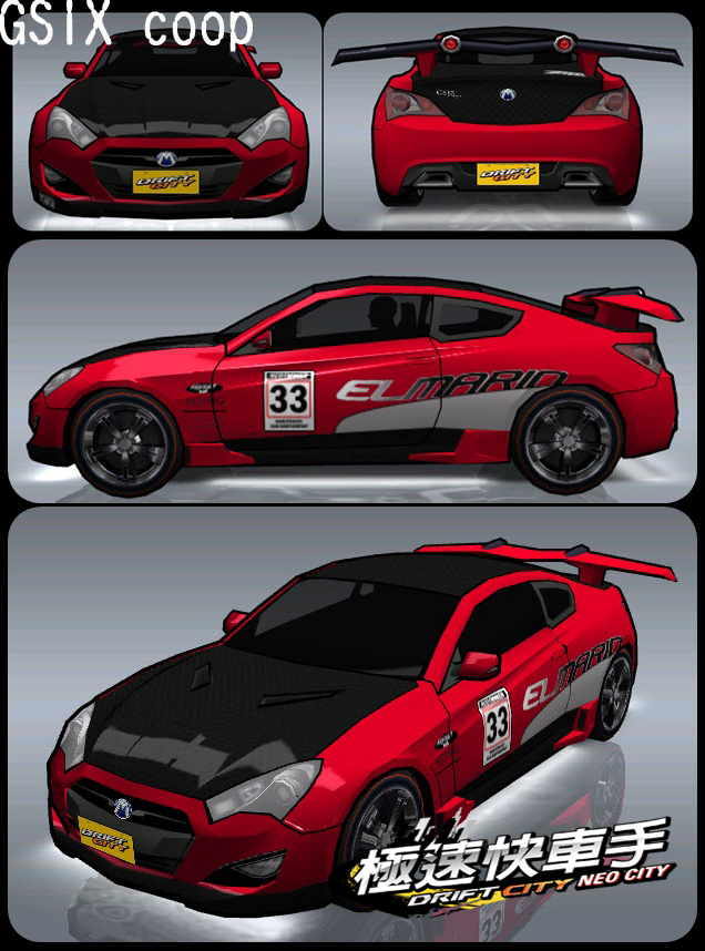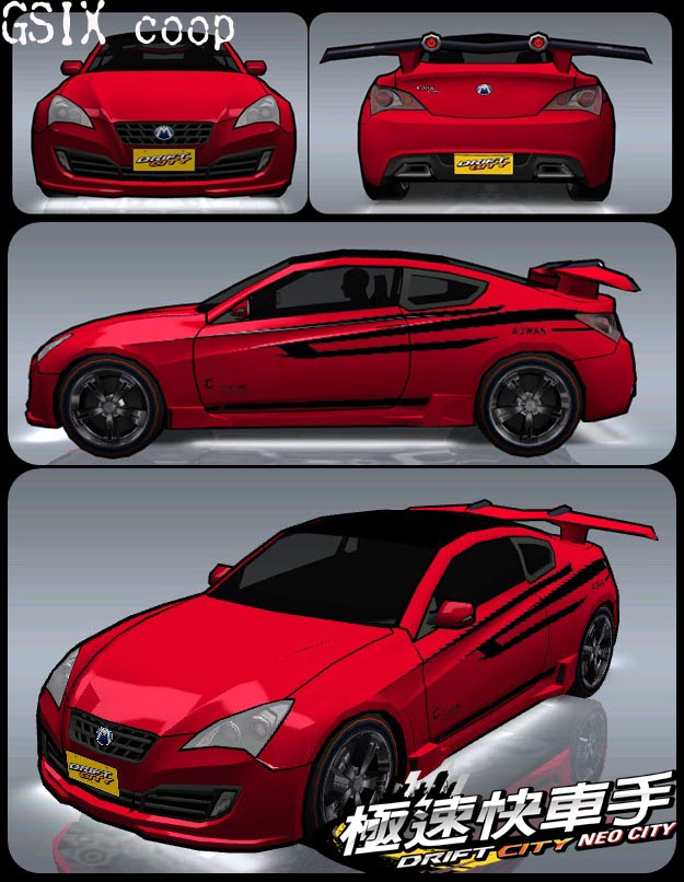 以年輕動感外型呈現的雙門跑車「Gsix Coop」擁有概念車大部分的俐落線條,且在車頭及車尾大膽展現設計感,再加上豐腴的車尾,令人不禁好奇其後輪驅動性能表現。實車為Hyundai Genesis Coupe的「Gsix Coop」,在遊戲中性能表現優異,ST特仕版V9時可達277讓人眼睛為之一亮,想擁有一台韓系運動風格的雙門跑車,就來轉蛋和ST彩券試試手氣吧!