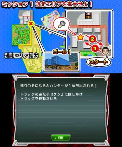 利用各式各樣的道具來躲開獵人,達成連續派出的任務,能否順利獲得獎金呢?!在時間內盡可能的逃走吧!你能否從十個舞台中順利逃脫,獲得全額獎金呢?!