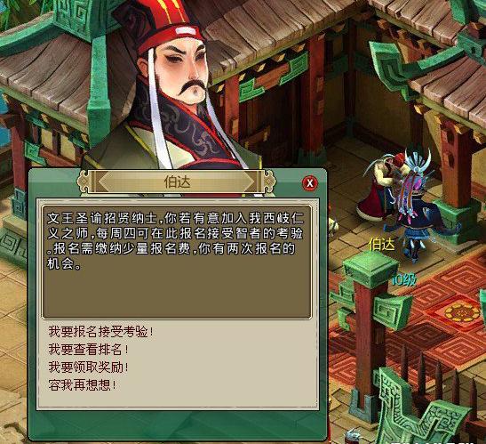 揭下招賢榜的玩家可獲得武王親策的機會,武王親策環節會進行及時,武王會提出10道問題,每答錯1題計時會增加100秒。