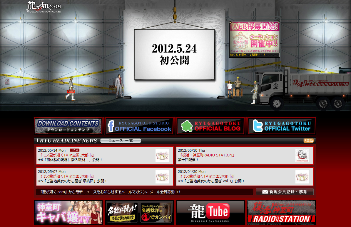 人中之龍》系列的官方網站變成了 “全面施工中”。
