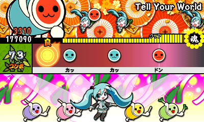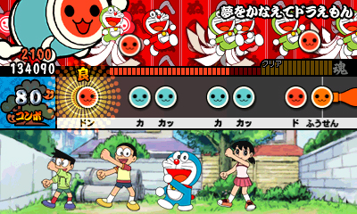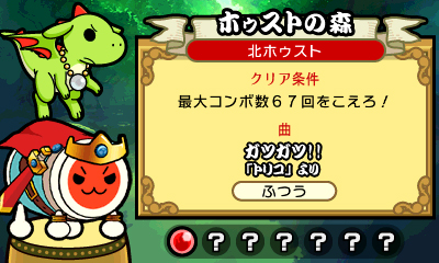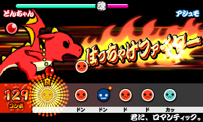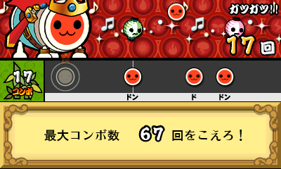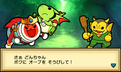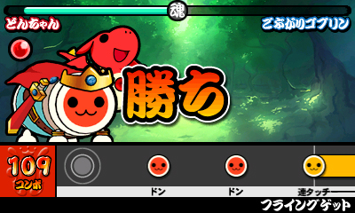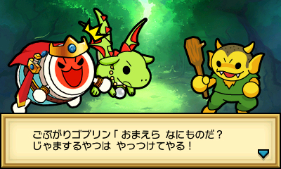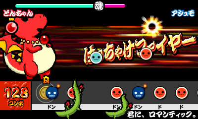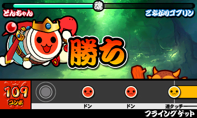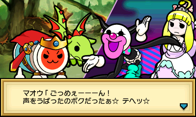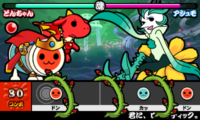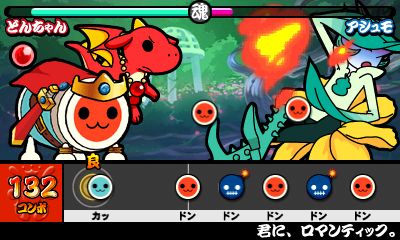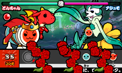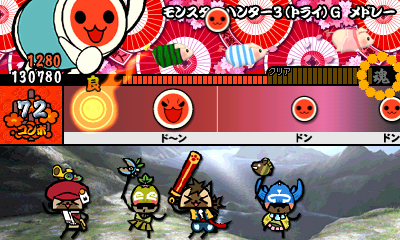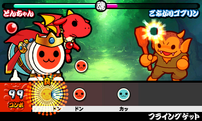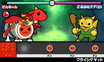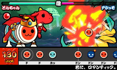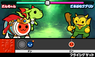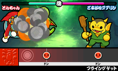太鼓之達人》的節奏遊戲,不過有著只要敲打到魔物放出來的爆彈就會受到大損傷的「爆彈音符」以外,還會有讓音符看不見的「干擾攻擊」。關於這部分,還會有什麼其他類型的要素也令人在意。